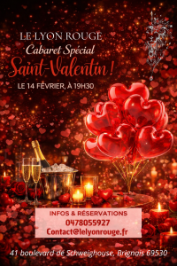 Pour célébrer la fête des amoureux, notre cabaret vous invite à vivre une soirée Saint-Valentin d'exception, placée sous le signe de l'élégance et raffinement. Dans un atmosphère intimiste et glamour, profitez d'un specatcle de cabaret soigneusement mis en scène, accompagné d'une expérience gourmande, pour partager un moment unique à deux.